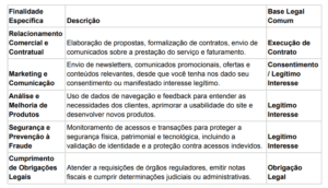 ● Fornecedores e Parceiros: Para a execução de contratos, como serviços de